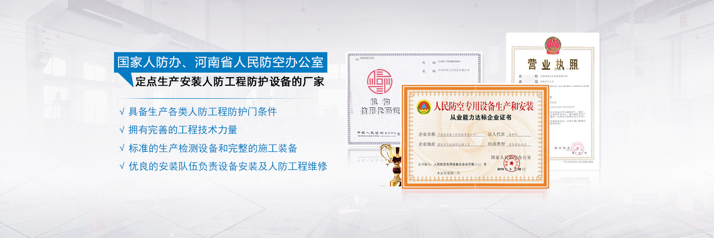 河南津晟人防設備有限公司成立于2013年01月22日,于2014年獲得國家人防辦、河南省人民防空辦公室許可,是生產及安裝人防工程防護設備的廠家。主要從事人防設備的生產、銷售及安裝,產品涵蓋了人防領域各個方面,主要分為人防門及人防通風及防化濾毒設備。其中人防門包含鋼結構單雙扇防護門及防護密閉門,鋼結構活門檻單雙扇密閉門及防護密閉門,降落式單雙扇密閉門及防護密閉門,密閉屏蔽門,防護密閉屏蔽門,鋼筋混凝土防護門及防護密閉門,建設部防護密閉門,懸板防爆波活門,膠管防爆波活門,槽鋼組合梁封堵框,防火密閉門,懸板活門,電控門、地鐵和隧道防護密閉門。通風及防化濾毒設備包括過濾吸收器、人防按鈕、防爆波地漏、通風方式信號控制箱、油網除塵器、電動腳踏兩用風機(人防腳踏風機)、離心風機,超壓排氣活門、各型密閉閥門等...
